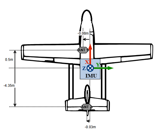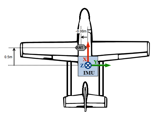 Lever Arm to enter will be : X=0.5m / Y=-0.08m / Z=0.21m (assuming the antenna is 21cm above the IMU)