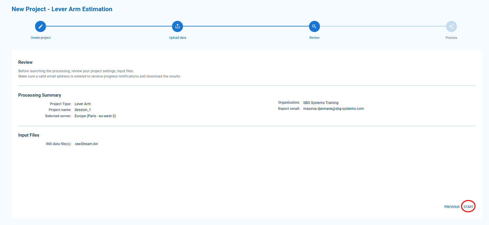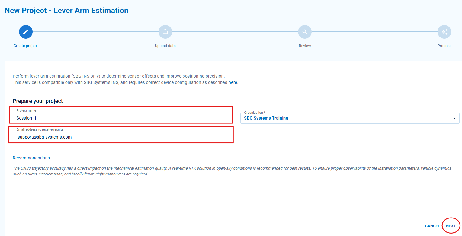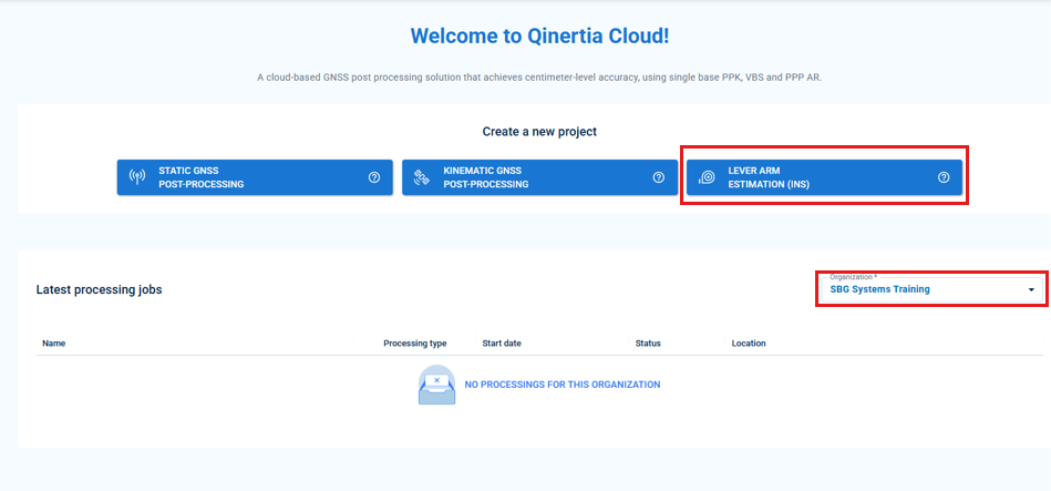 Step 2: Select your organization, and click on Lever Arm Estimation