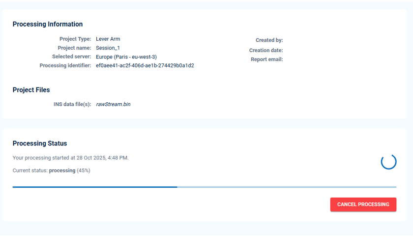 During this step, the data are being processed. Some indicators about the time to wait in the queue will appear.