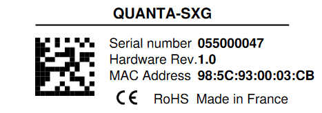 In addition to a unique serial number, a hardware code is used to define exactly the device type, options, configuration. You can find on the side of the product a laser printed label that holds all these identification information. This label also includes a data-matrix code that encodes the device unique serial number.