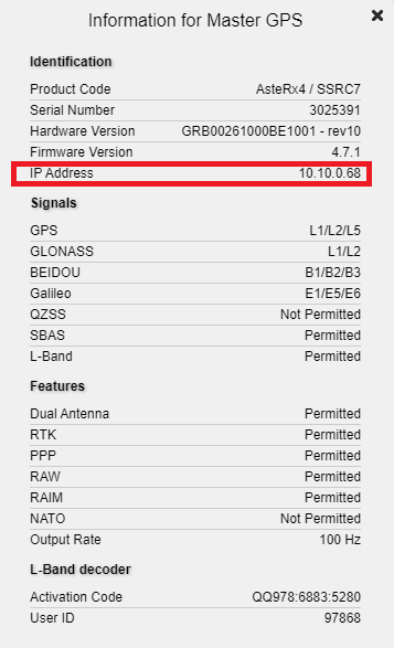 In order to access the Septentrio web interface, you will need to know the IP address of the receiver.
