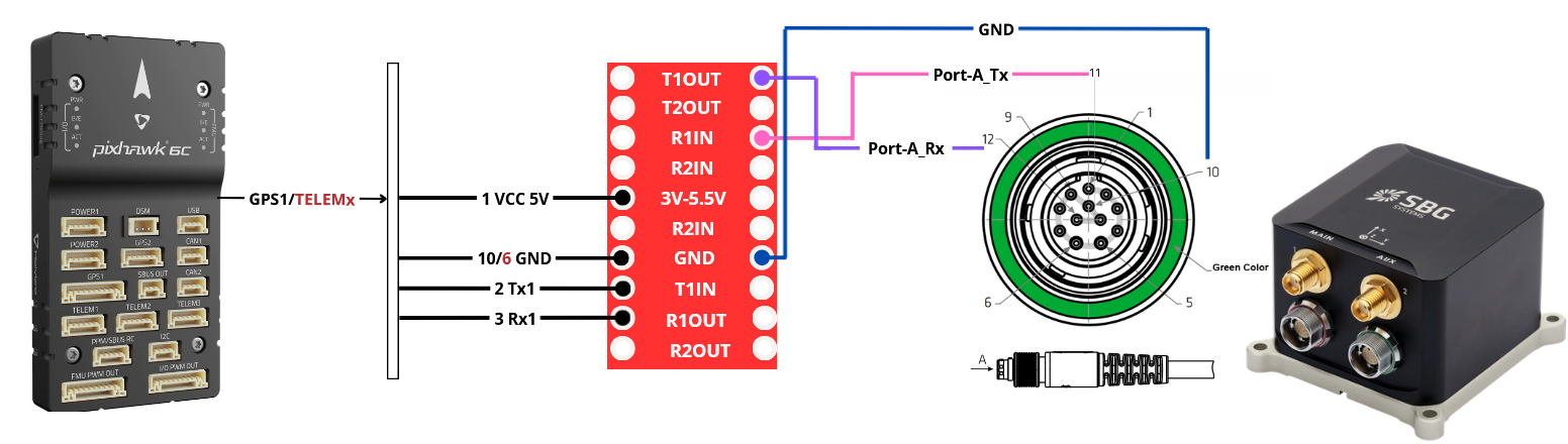 In these two examples we decided to connect the Ekinox-Micro to GPS1 port, but any other UART port can be used.
