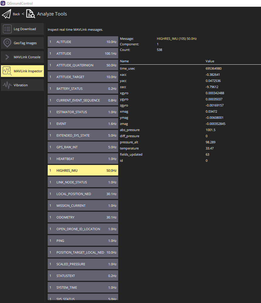 And in MAVLink inspector you will find all the messages received.