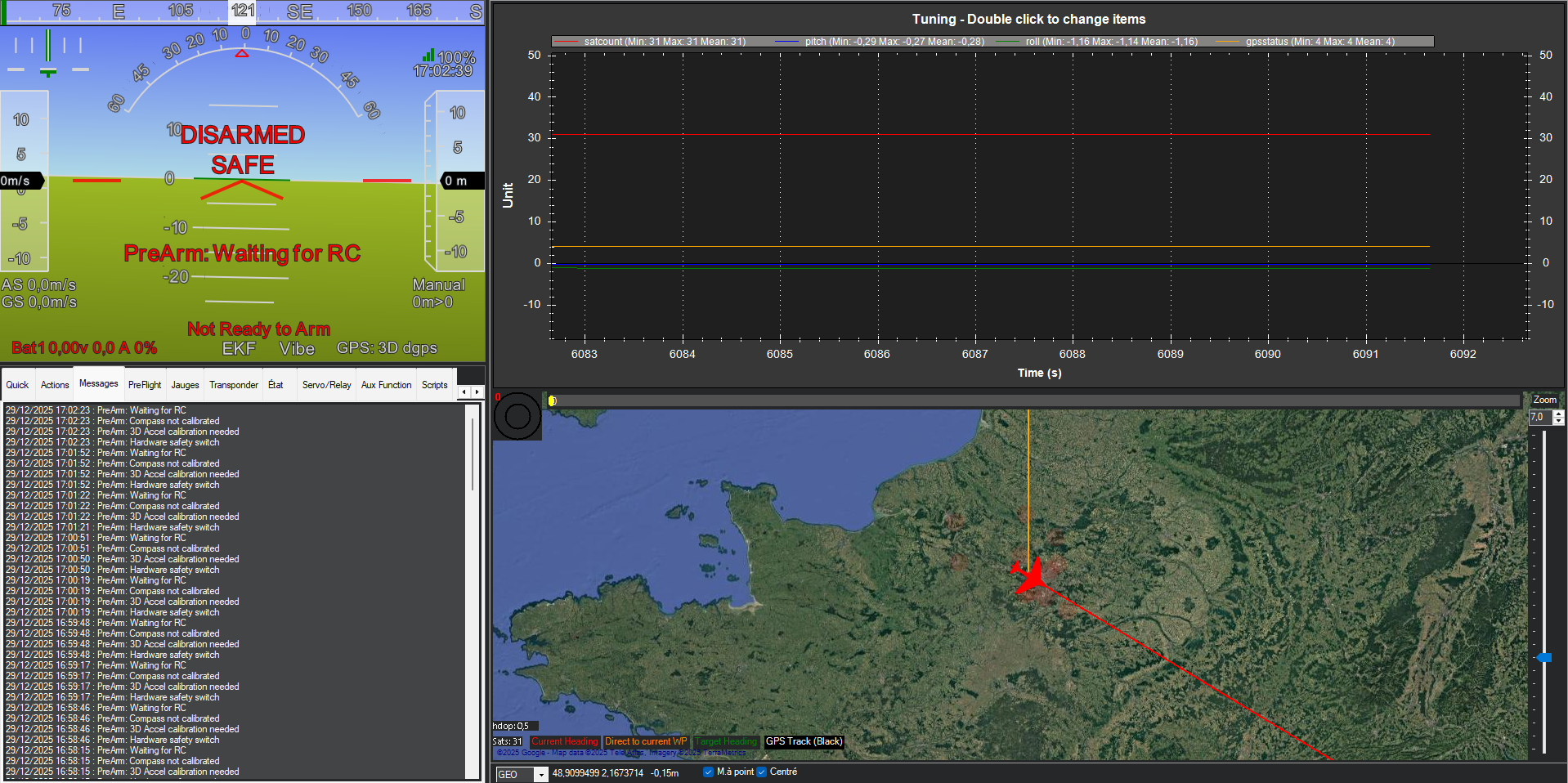 Once the installation and configuration is over, you can rely on various views proposed by Qground Control or Mission Planner (Mission Planner below for example).