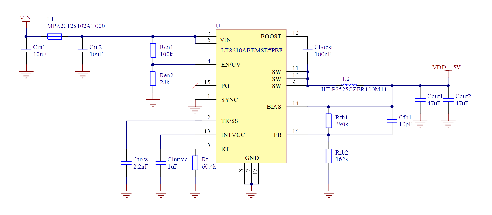 Note that optimal power consumption is obtained at 5.0V input.