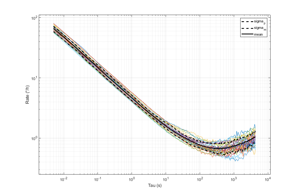 This drawing shows gyroscopes Allan variance for 32x Pulse-40 gyroscopes. More information on Allan Variance in the Knowledge center.