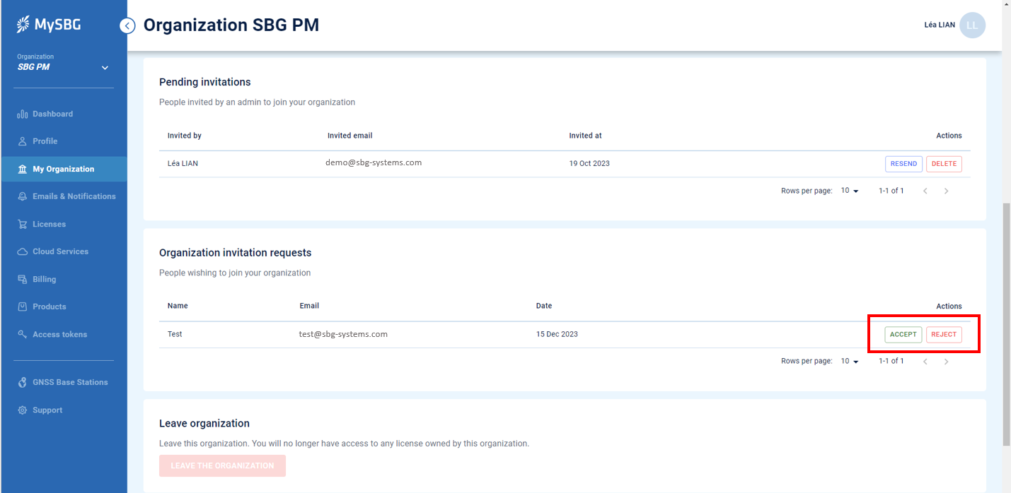 When someone requests to join your organization, you will receive a notification email, you can also accept or reject the request directly from the "My Organization" page.
