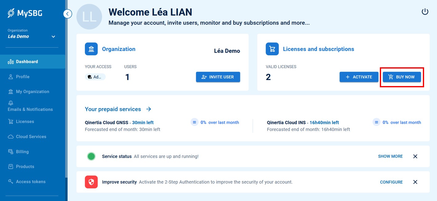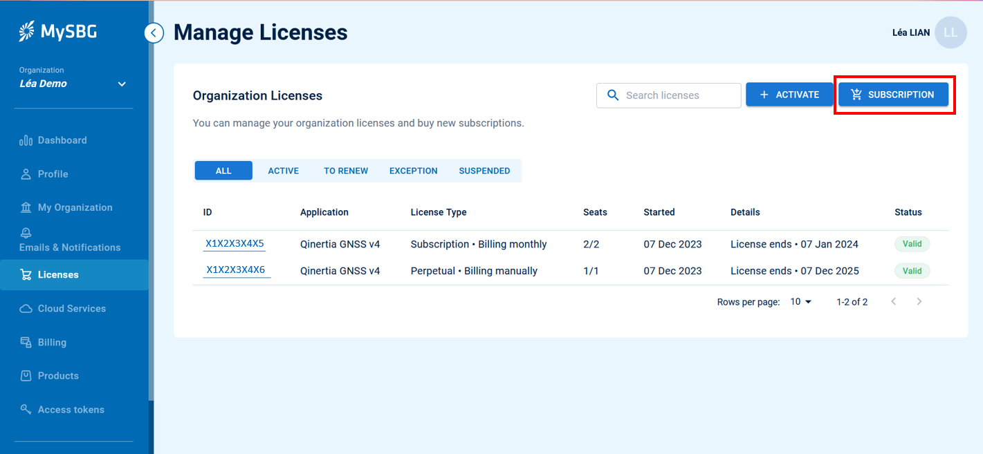 To acquire a new Qinertia Subscription license or Qinertia Cloud credits, please navigate to the dashboard or the license page, and click on the "Buy Now" or "Subscription" button to initiate the purchase process.