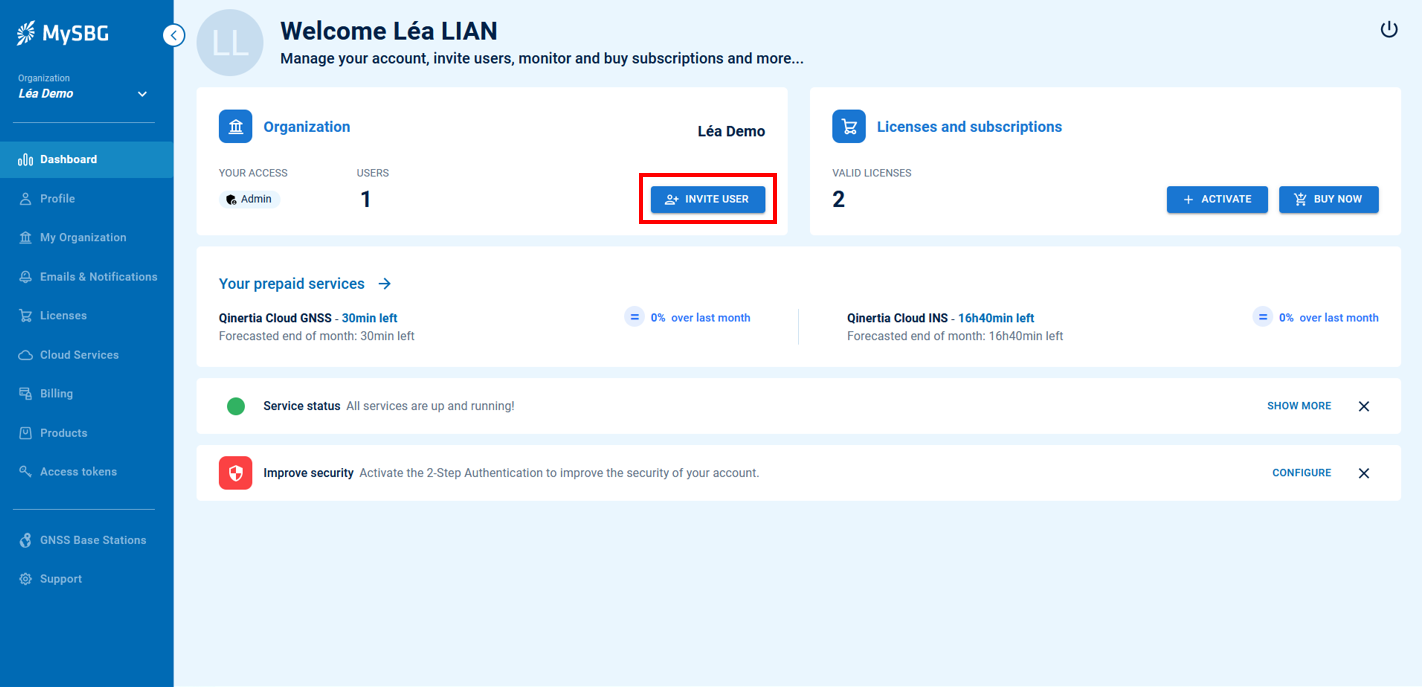 To share your license with other members of your organization, you will need to invite other users to join your organization from the dashboard page or my organization page.