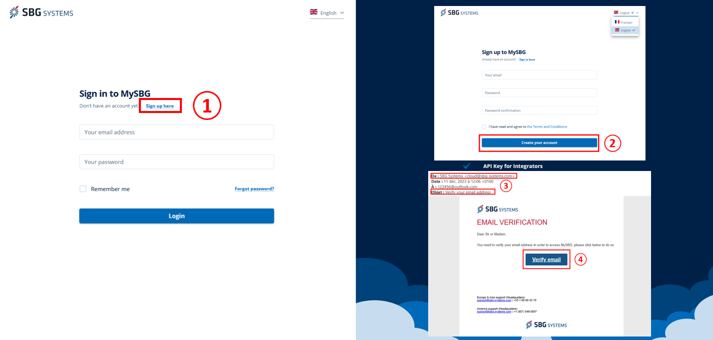 - Visit https://my.sbg-systems.com/ and click on "Sign Up Here".